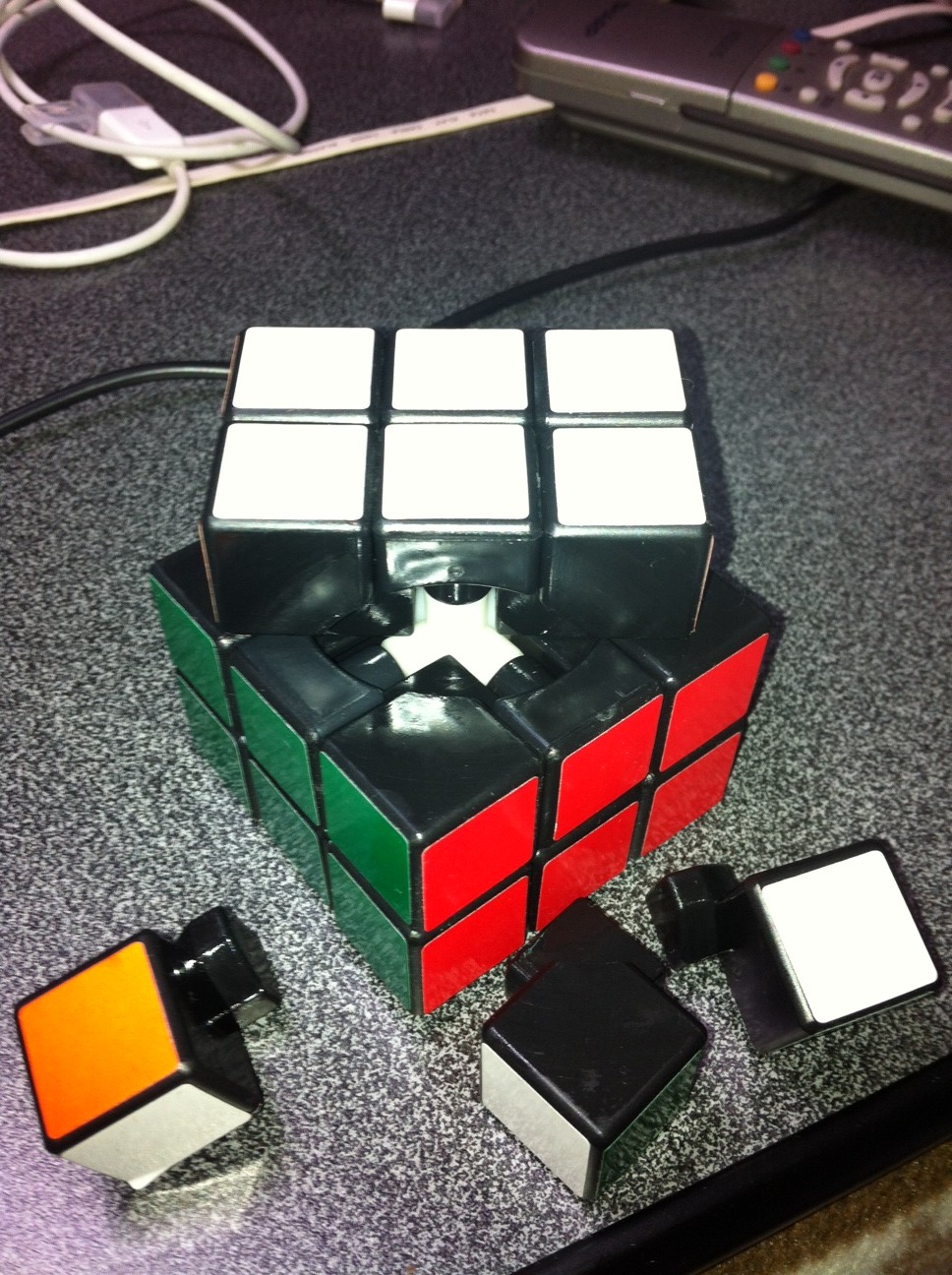 従弟がダイソーキューブを購入していたようなので、様子を見てみました。 シールは紙製。 海外配色・白コアでした。 僕が持っているのはパステル配色・黄色コア、kaddeyさんは海外配色・黒コアのものを所持しているとコメントでおっしゃっていました。 コアの色がまちまちなのは何なんだ。 回し心地などは同じ。
