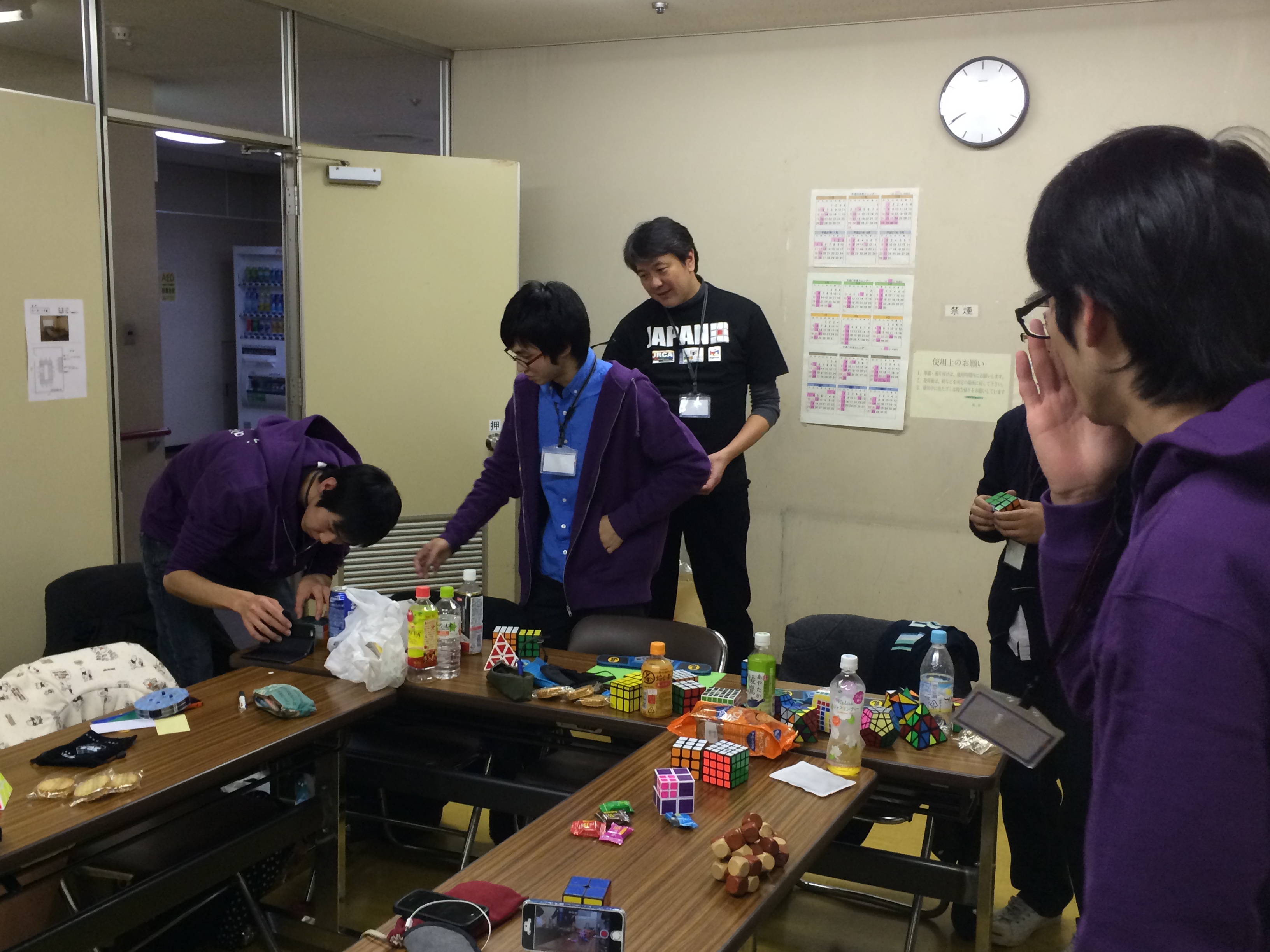 ヤシマさんは、キューブを始めたのはごくごく最近とのことでしたが、そのコレクタースピリッツはなかなかのもので既にたくさんのパズルをテーブルに色々並べていました。