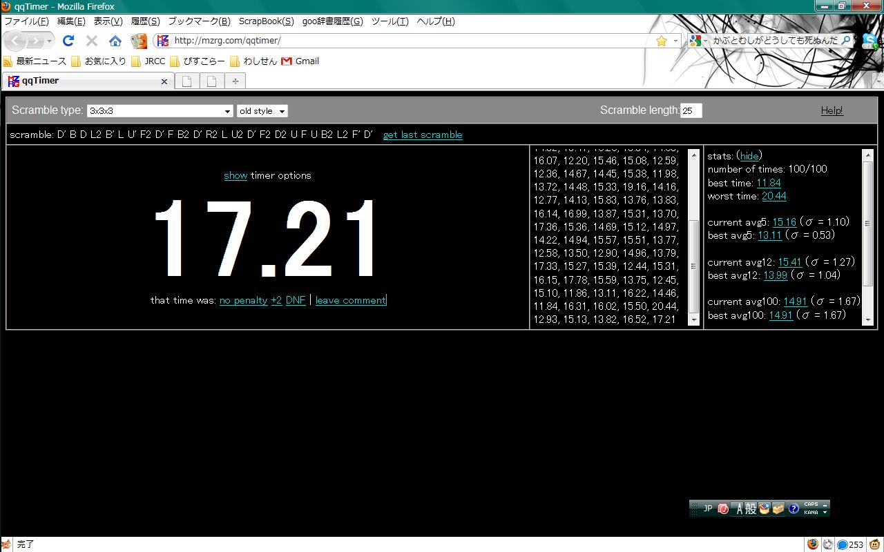 調子が良いので調子に乗って100回計ったら、Sub15が出た。