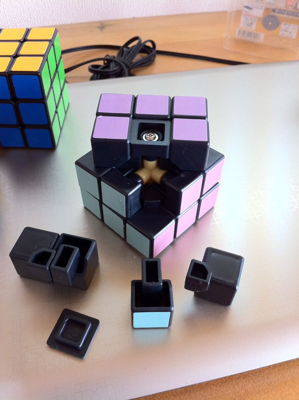 お正月くらいに買っておいたダイソーキューブをようやく開封しました。同じブツですが、私のは黒コアでした。あ、あとフツーに海外配色でした。 友達の家とかに勝手に置いてかえる「置きキューブ」にはちょうどいいかもしれません。 もうちょっと色々弄ってみてたいと思います。